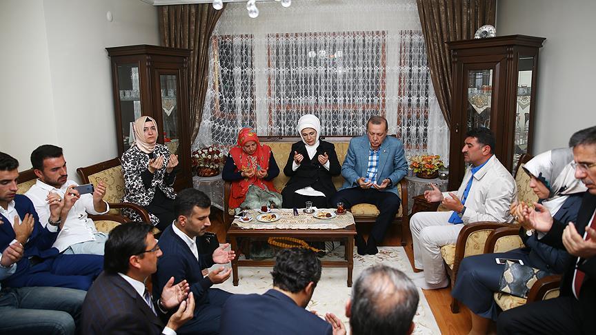 Cumhurbaşkanı Erdoğan darbe girişiminde şehit olan Ömer Takdemir, Ümit Güder, Muhtar Ali Anar, üniversite öğrencisi Mustafa Avcu, Astsubay Ömer Halisdemir, Necati Sayın ve Fazıl Gürs'ün ailelerine tek tek ziyarette bulundu.