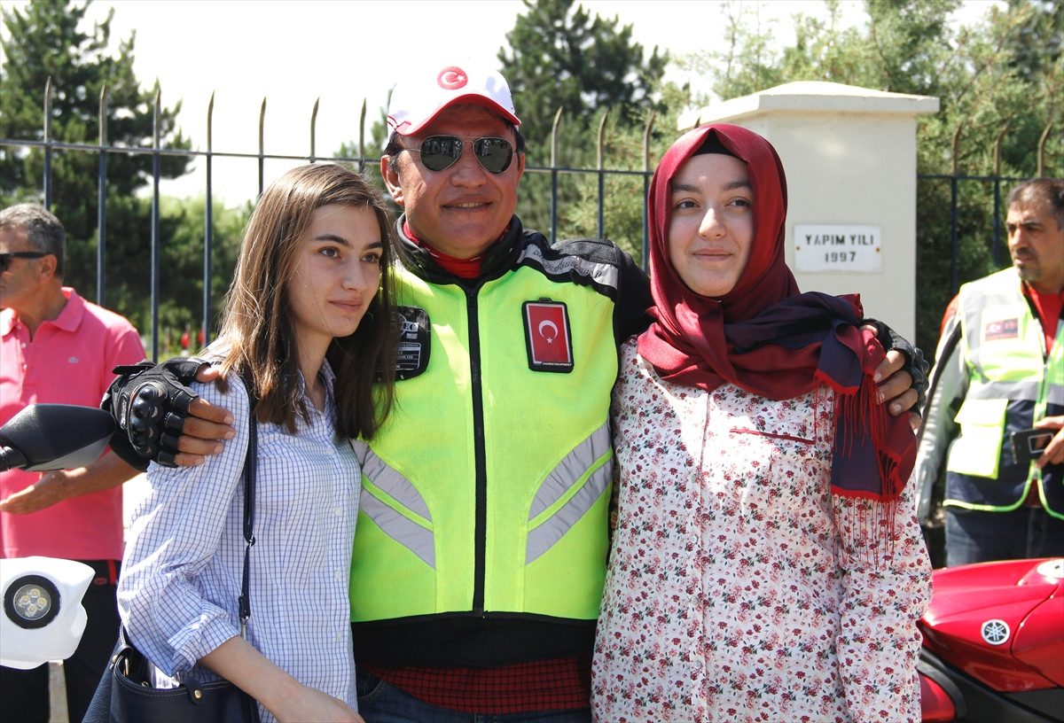 Özdemir'e diğer motosikletçiler de bir süre eşlik etti.