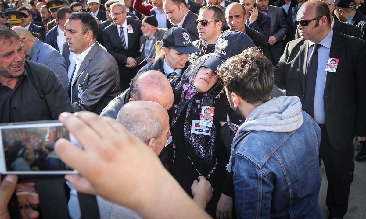 Cenaze namazı sonrası baygınlık geçiren şehidin eşi Merve Kaygusuz, ambulansla hastaneye kaldırıldı.