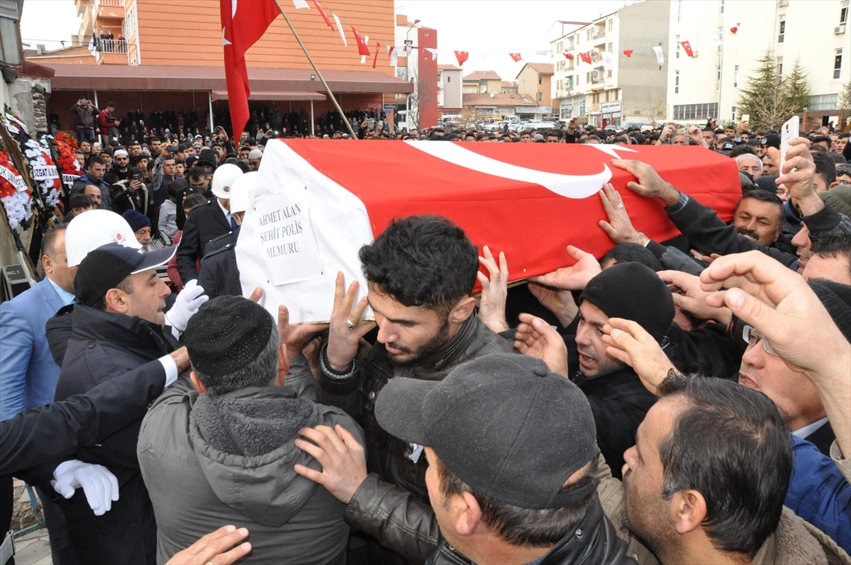 Daha sonra şehit polis için belediye meydanında cenaze töreni düzenlendi. Ahmet Alan'ın cenazesi, burada öğle vakti kılınan cenaze namazının ardından Karşıyaka Mezarlığı'na defnedildi.