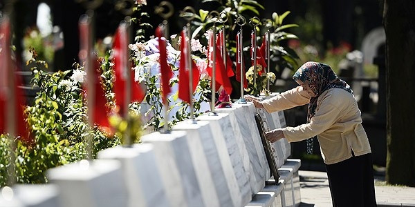 Şehit olan evlatları, eşleri ve babaları için kabirleri başında dua eden yakınları, bir bayramı daha onlarsız geçirmenin hüznünü yaşıyor. Tunceli'de 5 yıl önce, PKK'lı teröristlerin halı sahada futbol maçı yapan polislere açtığı ateş sonucu şehit olan komiser Cem Kerman ve eşi Dilay Kerman'ın mezarlarını ziyaret eden yakınları, onlara duydukları özlemi dile getirdi. Baba Ercan Kerman, AA muhabirine yaptığı açıklamada, her bayram şehidinin yokluğunu derinden hissettiklerini, bayramları buruk geçirdiklerini söyledi. Bu bayram gelinlerinin mezarından aldıkları çiçeği oğlunun mezarına ekeceklerini belirten Kerman, "Oğlumun acısı her zaman taze kalıyor. Unutmak mümkün mü? Sadece dışarıya yansıtmamaya çalışıyoruz. Ne kadar kabuk bağlarsa bağlasın, her gün gelen şehit haberleri de bizi derinden üzüyor." dedi. - "Terör olaylarına destek veren siyasileri kınıyorum" Kerman, Türkiye'nin yaşanan terör olaylarından bıktığını, terörün bitmesi için artık ne gerekiyorsa yapılması gerektiğini söyledi. Teröre destek verenleri kınayan Kerman, "Ben terör olaylarına destek veren siyasileri kınıyorum. Onları anlamakta gerçekten zorluk çekiyorum. Güzelim ülkemizi ne hale getirdiler. Ateş düştüğü yeri yakıyor. Onlar da oğullarını sadece mezarlık ziyaretinde görseler, o zaman ne demek istediğimi anlarlar." diye konuştu. Milletvekillerinin dokunulmazlıklarının kaldırılmasını desteklediğini anlatan Kerman, sadece kürsü dokunulmazlıklarının kalması gerektiğini savundu. Oğlunun mezarında ağlayarak dua eden anne Gülsen Kerman ise bir anne için evlat acısının kelimelerle anlatılamayacağını ifade ederek, "Bir evladım daha var. Mümkün olduğu kadar ona yansıtmamaya çalışıyoruz. Onları da hayata küstürmemeye çalışıyoruz. Şehidimi özlememek mümkün mü? Bayramlar, özel günler çok daha zor geçiyor benim için." diye konuştu.