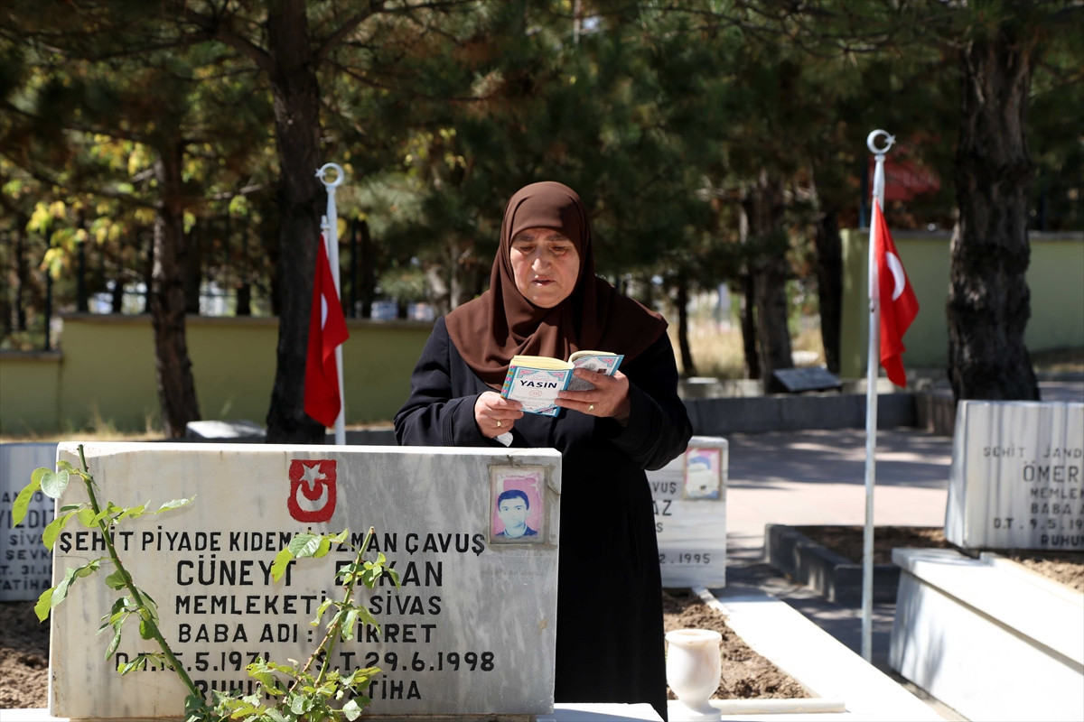SİVAS (AA) - Sivas'ta şehitlikler, Kurban Bayramı arifesinde şehitlerini ziyaret edenlerle doldu.