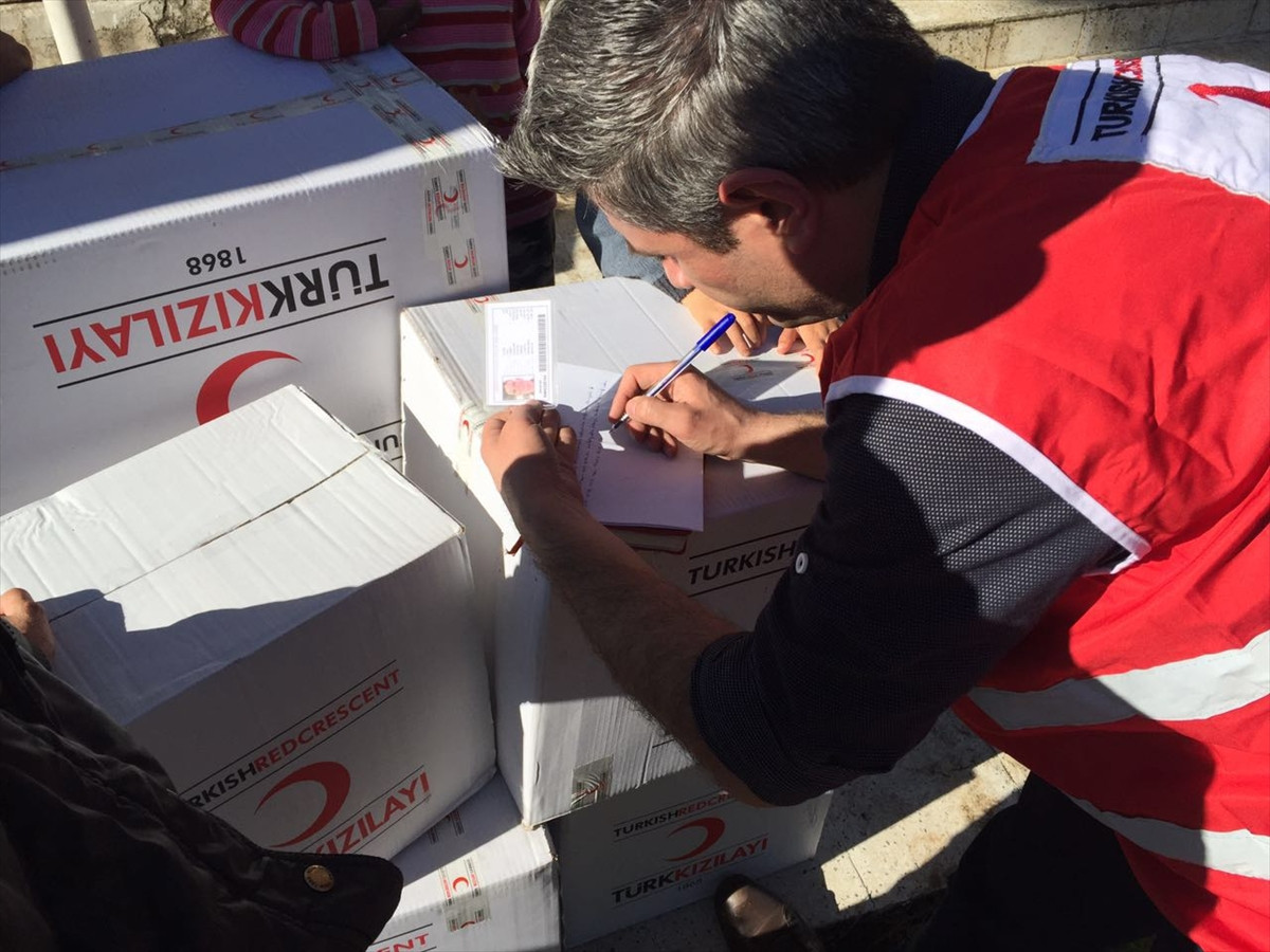 Tanık, 4 kişilik ailenin acil ihtiyacı olan giyim, gıda, battaniye ve temel yaşam malzemelerin bulunduğu yardım kolilerini Yusuf Alo'ya teslim etti.