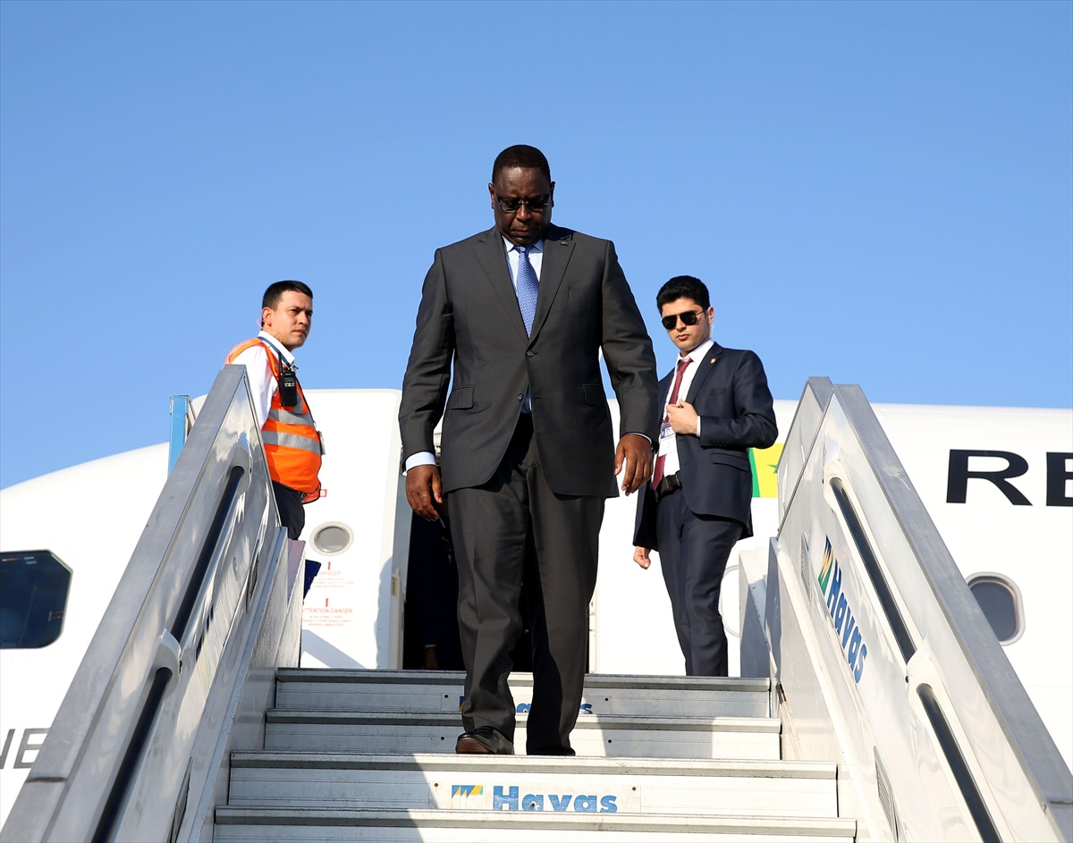Sall'ı taşıyan özel uçak, Atatürk Havalimanı'nda konuk liderler için hazırlanan alana indi. Macky Sall'ı, Ekonomi Bakanı Mustafa Elitaş ve diğer ilgililer karşıladı.