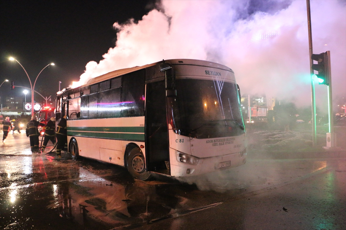 ADANA (AA) - Adana'nın merkez Seyhan ilçesinde özel halk otobüsünde seyir halindeyken yangın çıktı.