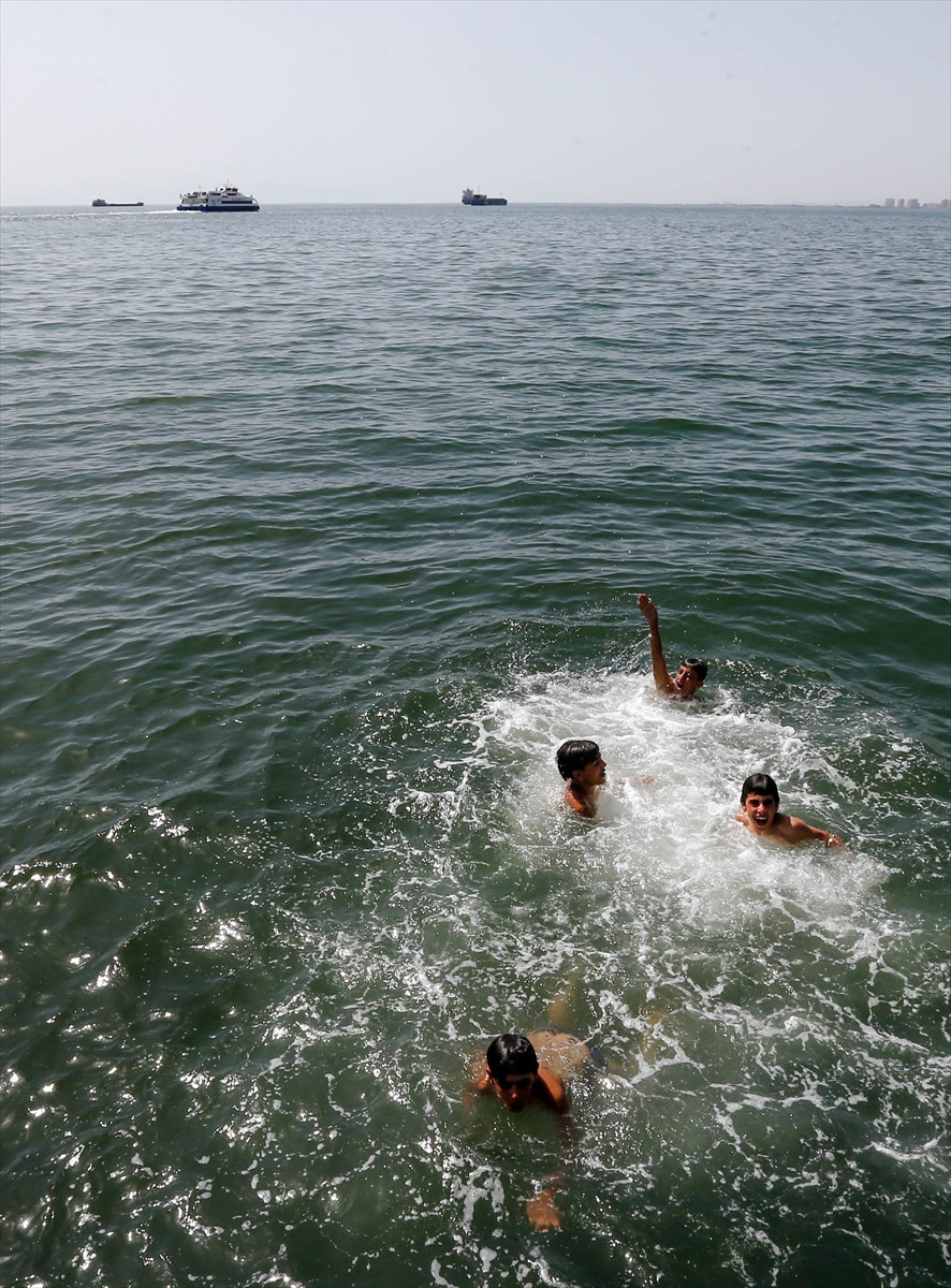 Sıcak havanın keyfini, Konak ve Kordonboyu'nda denize giren çocuklar çıkardı.