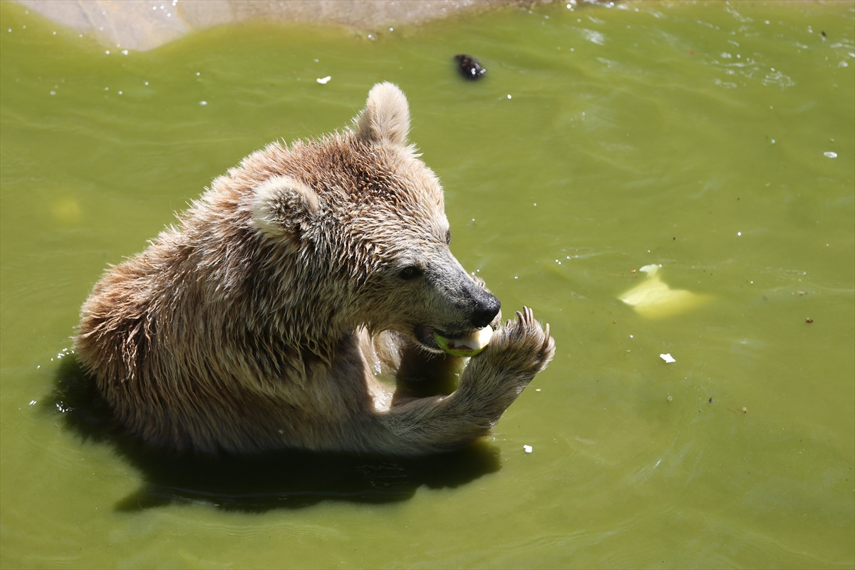 Gündüz hava sıcaklığının 35 dereceye kadar ulaştığı kentte bulunan hayvanat bahçesi sakinleri hayvanlar da sıcak havalardan olumsuz etkileniyor.