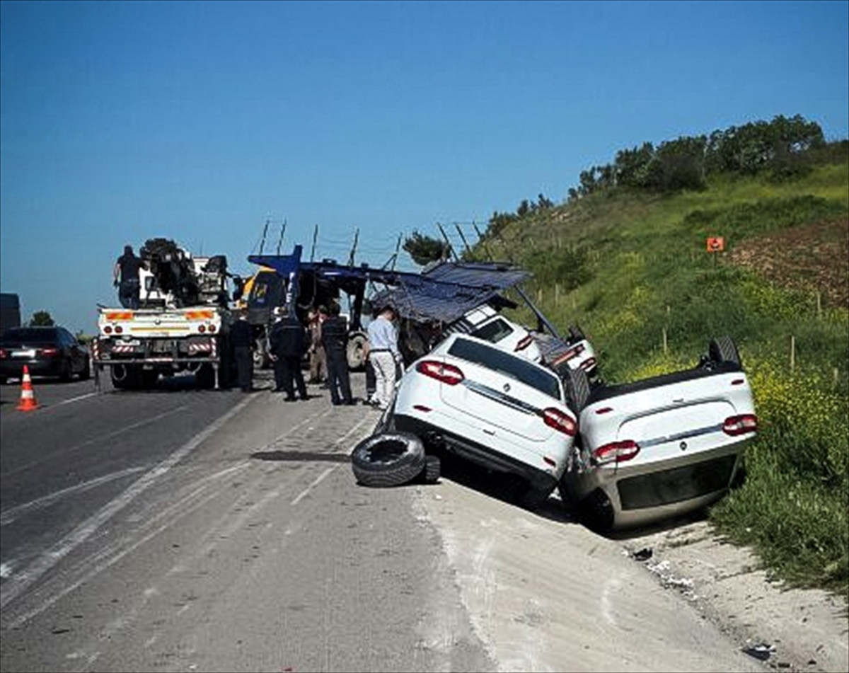 Bursa'nın Karacabey ilçesinde bir tırın devrilmesi sonucu hem bu araçta hem de dorseden düşen sıfır kilometre 7 otomobilde hasar oluştu. Alınan bilgiye göre, Murat K. yönetimindeki 34 AZ 0950 plakalı tır, Bursa-İzmir karayolunun 30. kilometresinde İkizce Mahallesi mevkisinde şarampole devrildi. Sürücünün yara almadan kurtulduğu kazada, tır ile dorsesinde bulunan 7 otomobil zarar gördü. Büyük çapta hasar oluşan otomobillerin, İzmir'e götürülmek üzere Bursa'daki bir otomobil fabrikasından yola çıkarıldığı öğrenildi. Kaza sonrası tır ile otomobiller, çekici yardımıyla bulundukları yerden çıkarıldı.