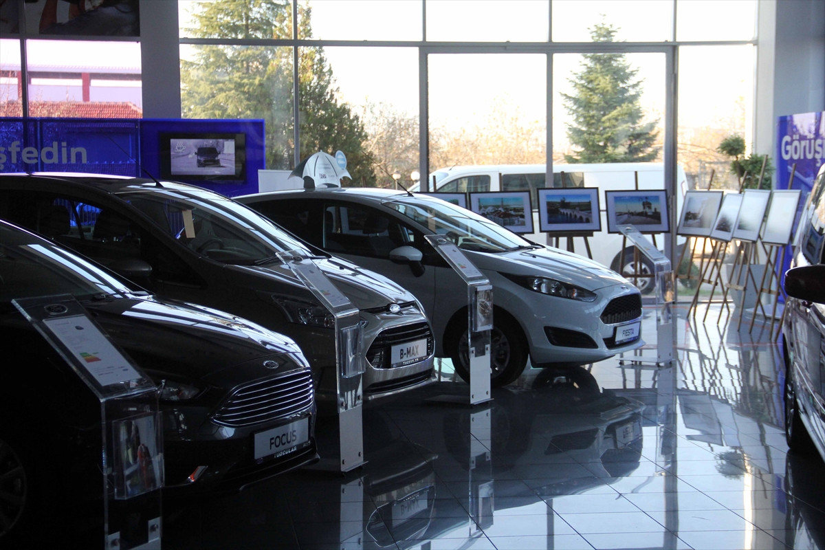 EDİRNE (AA) - Bir otomobil firmasının Edirne'deki bayisinde, araçların arasında büyütülmüş kartpostal sergisi açıldı.