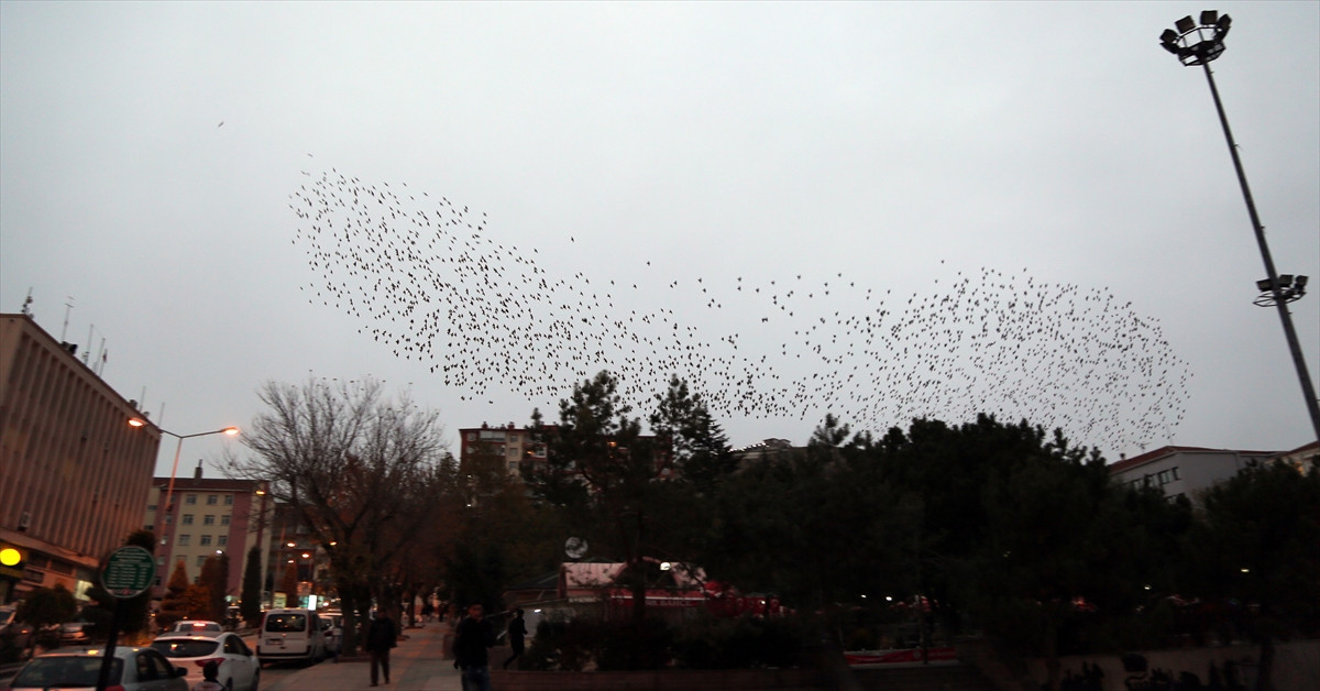 YOZGAT (AA) - Binlerce sığırcık kuşunun bir arada sergiledikleri hareketler Yozgat semalarında görsel şölen oluşturdu.
