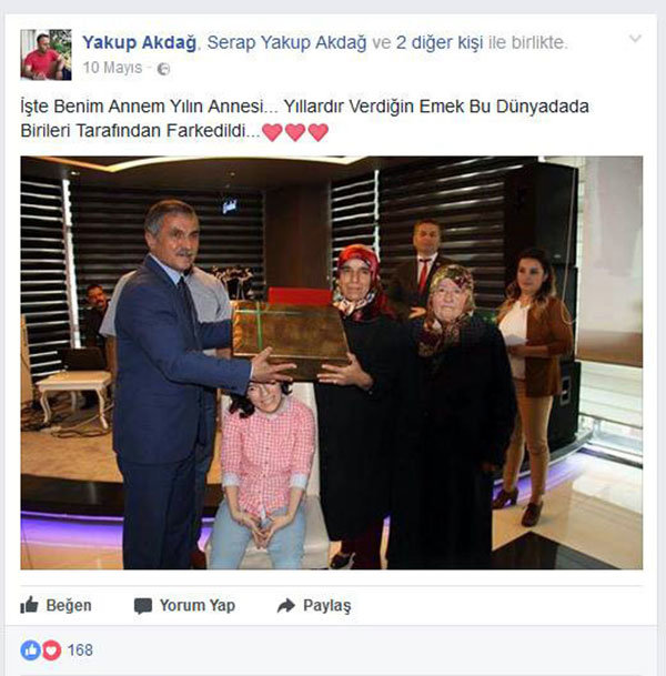 Şehit Jandarma Astsubay Üstçavuş Yakup Akdağ sosyal medya hesabından yılın annesi seçilen Güllüzar Akdağ ve kardeşinin ödül alırken çekilen fotoğrafını (üstte) paylaşarak, ’İşte benim annem yılın annesi. Yıllardır verdiğin emek bu dünyada da birileri tarafından fark edildi’ diye yazmıştı.