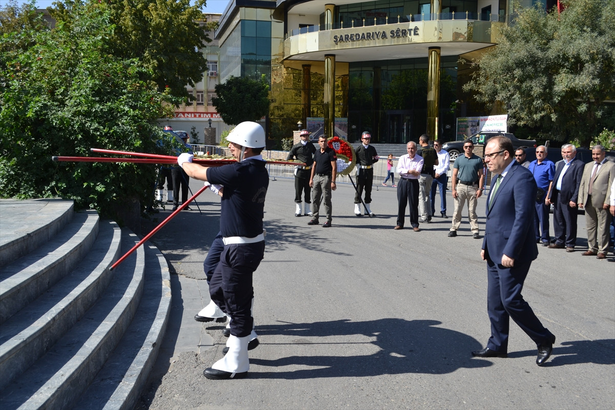 Siirt Valisi Mustafa Tutulmaz, İl Jandarma Komutanı Kurmay Albay Halidun Eren, Belediye Başkan Vekili Zekeriya Çığır, Emniyet Müdürü Metin Özkan ile kamu kurumlarının müdürlerinin ve sivil toplum örgütü temsilcilerinin katıldığı tören, Atatürk Anıtı'na çelenk sunulmasıyla başladı.