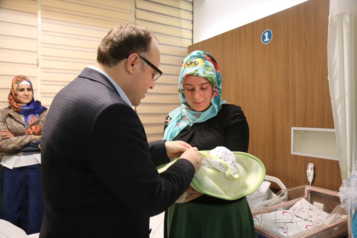Hastaneye yeni doğum için başvuran kimse olmadığı için Vali Tutulmaz ve Belediye Başkan Vekili Taşkın, 2016 yılında doğan son bebeği 3 kilo 450 gram Umutcan ve 3 kilo 330 gram dünyaya gelen Elvin'e çeyrek altın taktı.