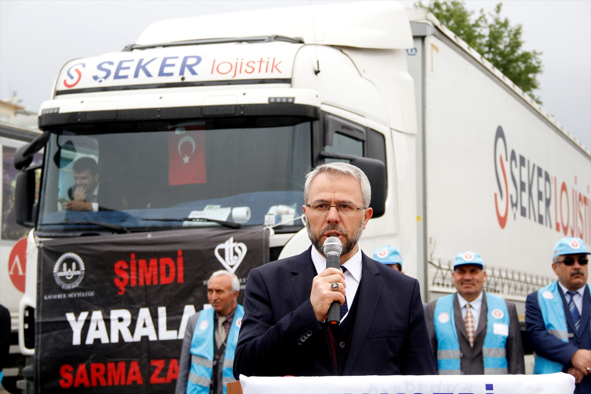 KAYSERİ (AA) - Diyanet İşleri Başkanlığınca başlatılan "Şimdi Yaraları Sarma Zamanı" kampanyası kapsamında Kayseri'de toplanan 8 tır yardım malzemesi, Suriyeli sığınmacılar, Bayırbucak Türkmenleri ve Diyarbakır'daki terör mağdurlarına gönderildi.