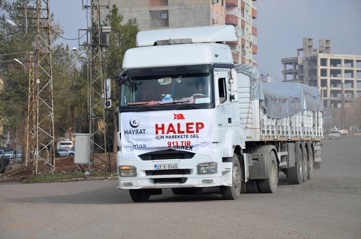 "Şu an büyük bir insanlık dramının yaşandığı Halep'ten göçen mazlumların acısını bir nebze olsun hafifletmek adına kampanya başlattık. Bu kapsamda dernek olarak Türkiye genelinde 640 tır yardım sevkiyatı yapma kararı aldık ve bu tırları peyderpey gönderiyoruz. Suriye'deki olaylar baş gösterdiğinden beri 912 tır gönderdik. Bugün de Türkiye genelindeki 913. tırımızı gönderiyoruz. Hayırseverlere desteklerinden dolayı teşekkür ediyoruz."