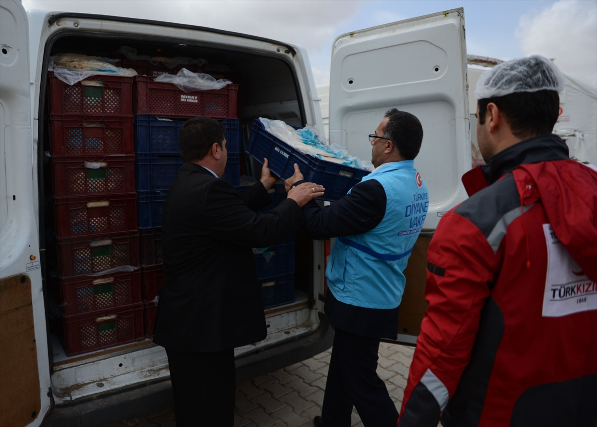 "Şimdiye kadar yardımları Suriye'deki mültecilere koliler içerisinde gönderiyorduk ancak son yaşanan yoğun bombardıman sonrası mültecilerin gönderilen gıda maddelerini yemek yapacak imkanları kalmayınca, Diyanet İşleri Başkanlığının tavsiyesiyle biz de mobil mutfak kurmaya karar verdik. Burada günlük 5 bin kişiye yaptığımız sıcak yemeği sınır ötesindeki mağdur ve yerleşik hayata geçmemiş kardeşlerimize gönderiyoruz. Ayrıca günlük ürettiğimiz 40 bin ekmekten 30 binini Suriye'ye, diğer 10 binini ise Kilis kent merkezindeki Suriyeli kardeşlerimize ulaştırıyoruz. Onun dışındaki bize gönderilen mama ve süt gibi günlük bozulabilme ihtimali olan gıda maddelerini ise hemen Suriye'deki ihtiyaç sahiplerine yolluyoruz."