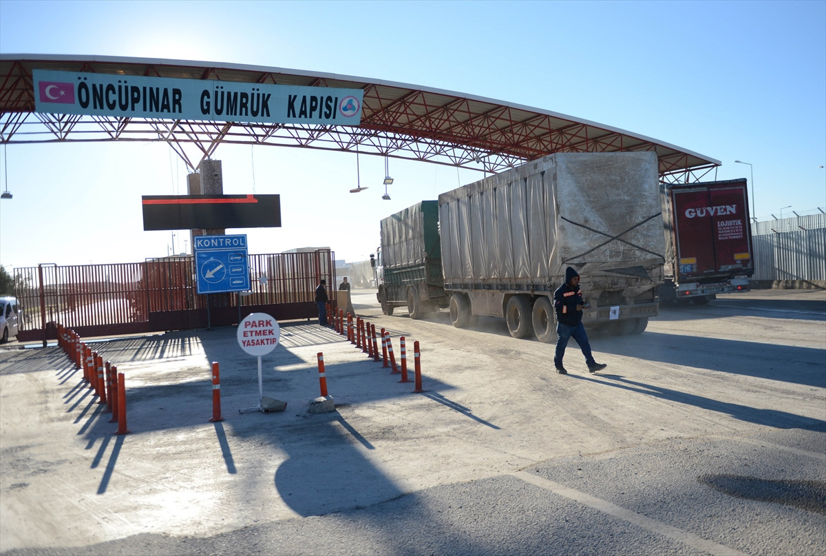 Yurdun dört bir yanından toplanan yardım malzemelerinin yüklendiği onlarca tır, Öncüpınar Gümrük Kapısı'ndaki işlemlerin ardından tampon bölgedeki Suriye plakalı araçlara nakledilip, ihtiyaç olan yerlere gönderiliyor.
