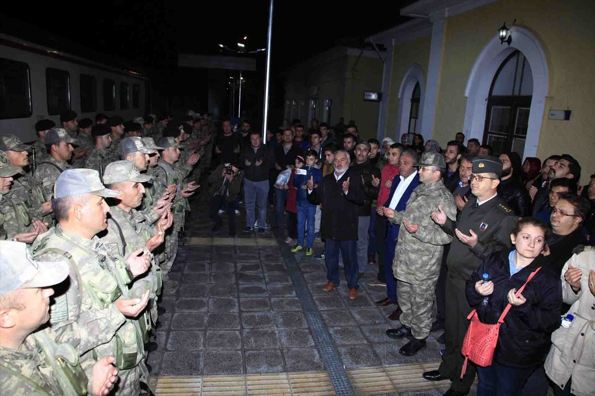 Çankırı Garnizon Komutanı İstihbarat Kurmay Albay Abdullah Dede, İl Jandarma Komutanı Albay Halil Altıntaş ve asker aileleri, Çankırı Tren Garı'nda bölgeye giden askerleri uğurlamaya geldi.