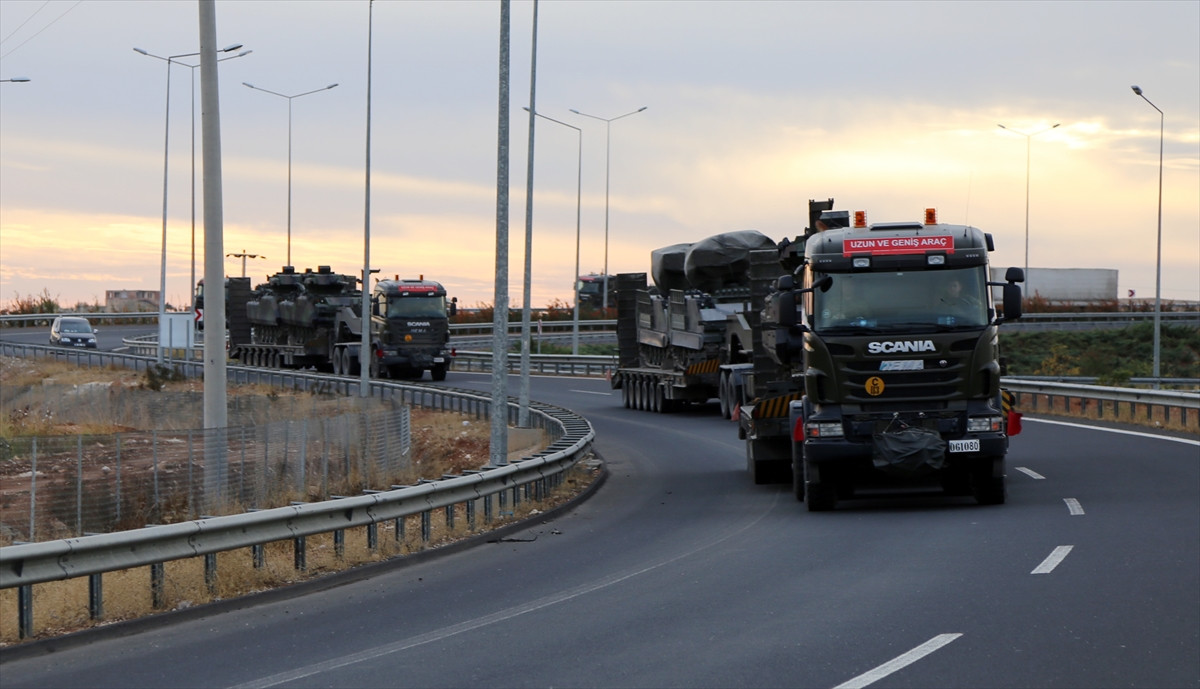 Çankırı'da bulunan 28'inci Mekanize Piyade Tugay Komutan Yardımcılığına ait Geliştirilmiş Zırhlı Personel Taşıyıcı (GZPT) ve Zırhlı Personel Taşıyıcılar (ZPT) ile çok sayıda askeri aracı taşıyan tırlar Şanlıurfa'ya ulaştı.