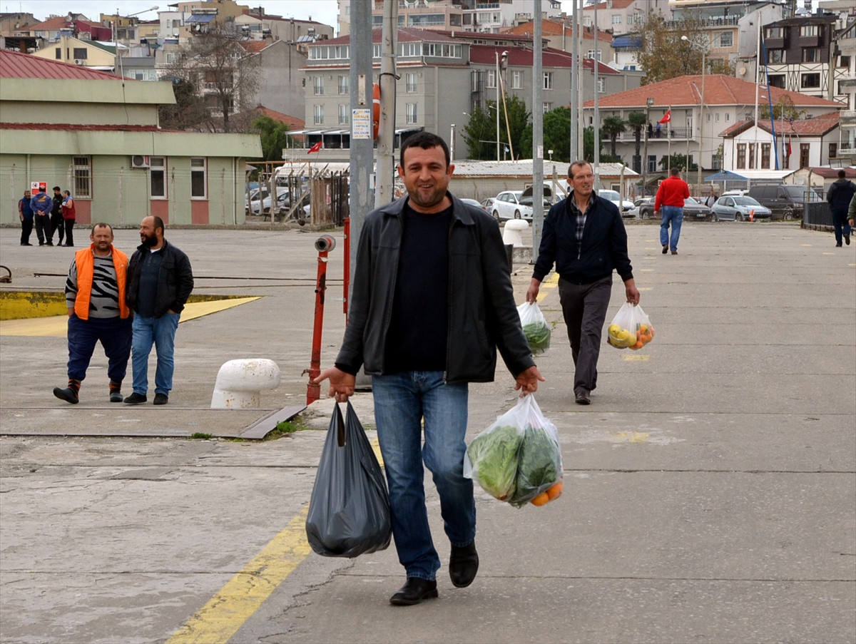SİNOP (AA) - Türkiye'nin farklı illerinden Sinop'a gelen ancak olumsuz hava koşulları nedeniyle denize açılamayan balıkçılar, yaptıkları alışverişle kentteki esnafı sevindirdi.