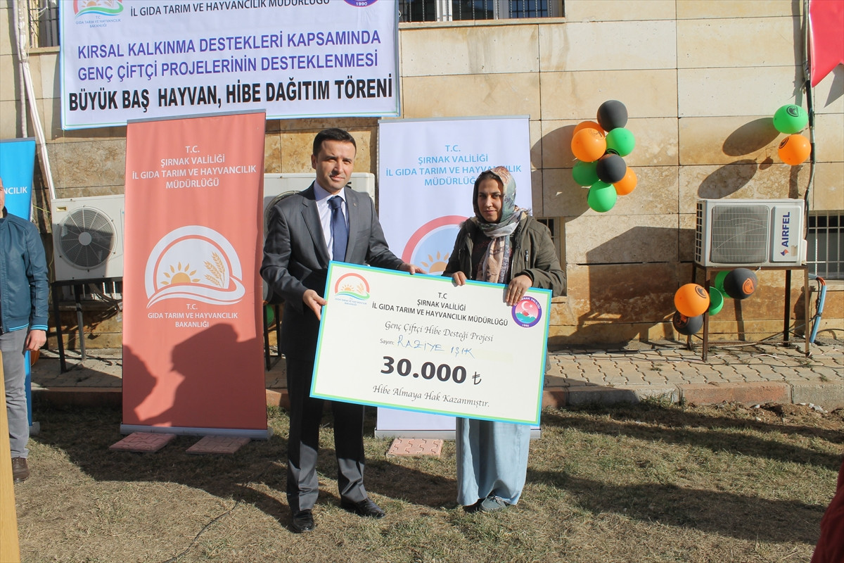 ŞIRNAK (AA) - Şırnak'ta, Gıda Tarım ve Hayvancılık İl Müdürlüğü Kırsal Kalkınma Ekonomik Yatırımları Genç Çiftçi Projeleri kapsamında hibe desteği kazanan 103 çiftçiye toplam 618 büyükbaş hayvan verildi.