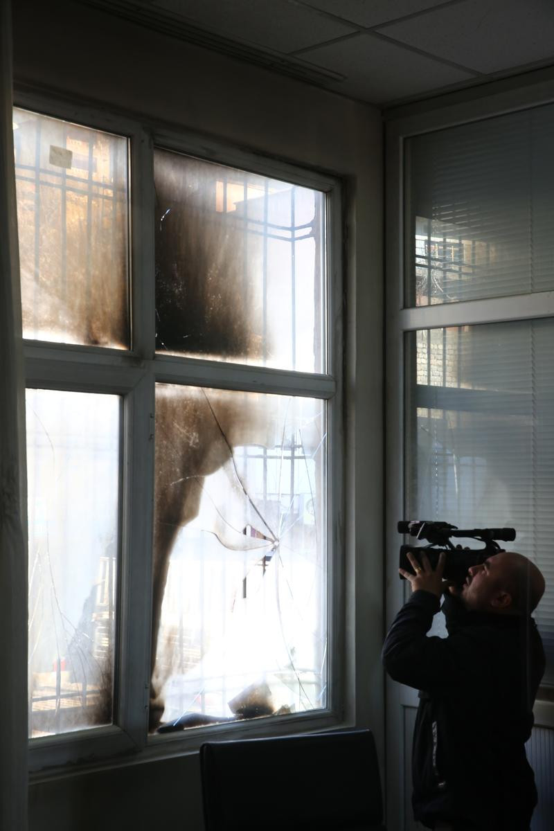 Alınan bilgiye göre, bir grup terörist, SGK ile Çevre ve Şehircilik il müdürlüklerinin binalarına molotofkokteyli atarak ara sokaklara kaçtı.