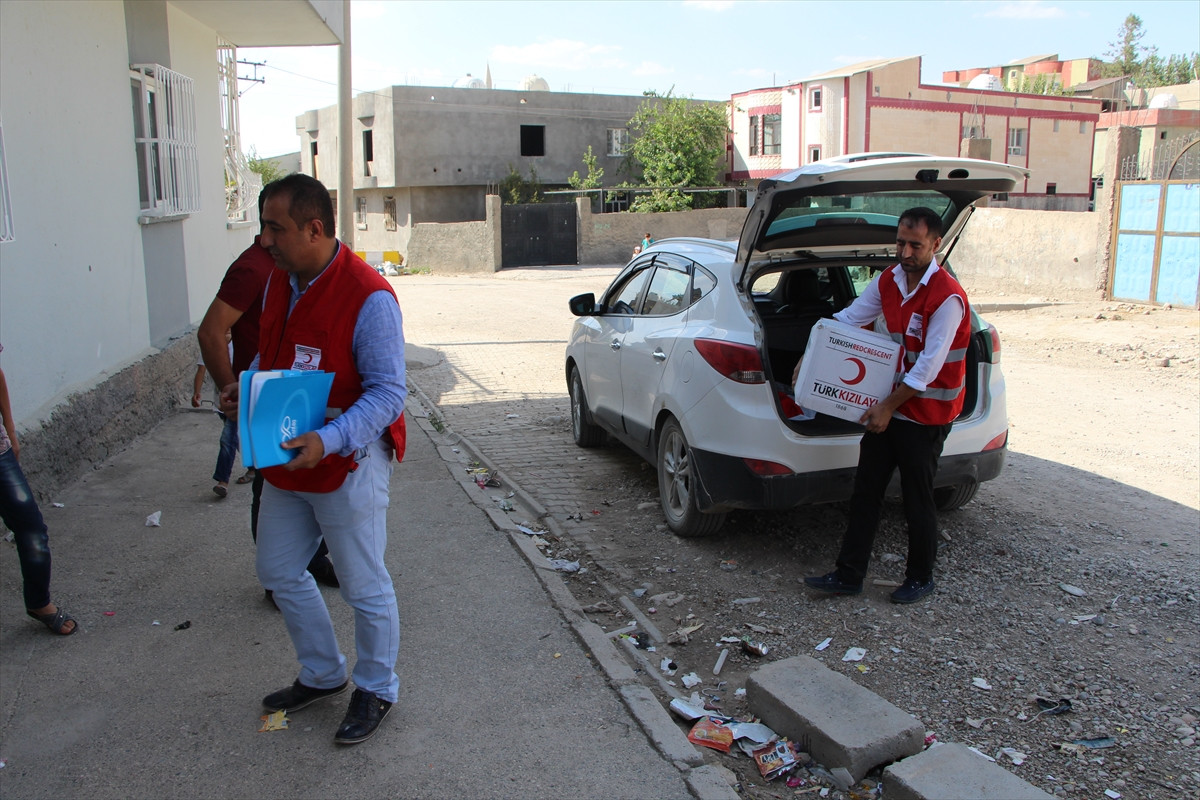 ŞIRNAK (AA) - Türk Kızılayı tarafından gönderilen giyim ve gıda yardımları, Şırnak'ın Silopi ilçesinde terör mağduru ailelere dağıtıldı.