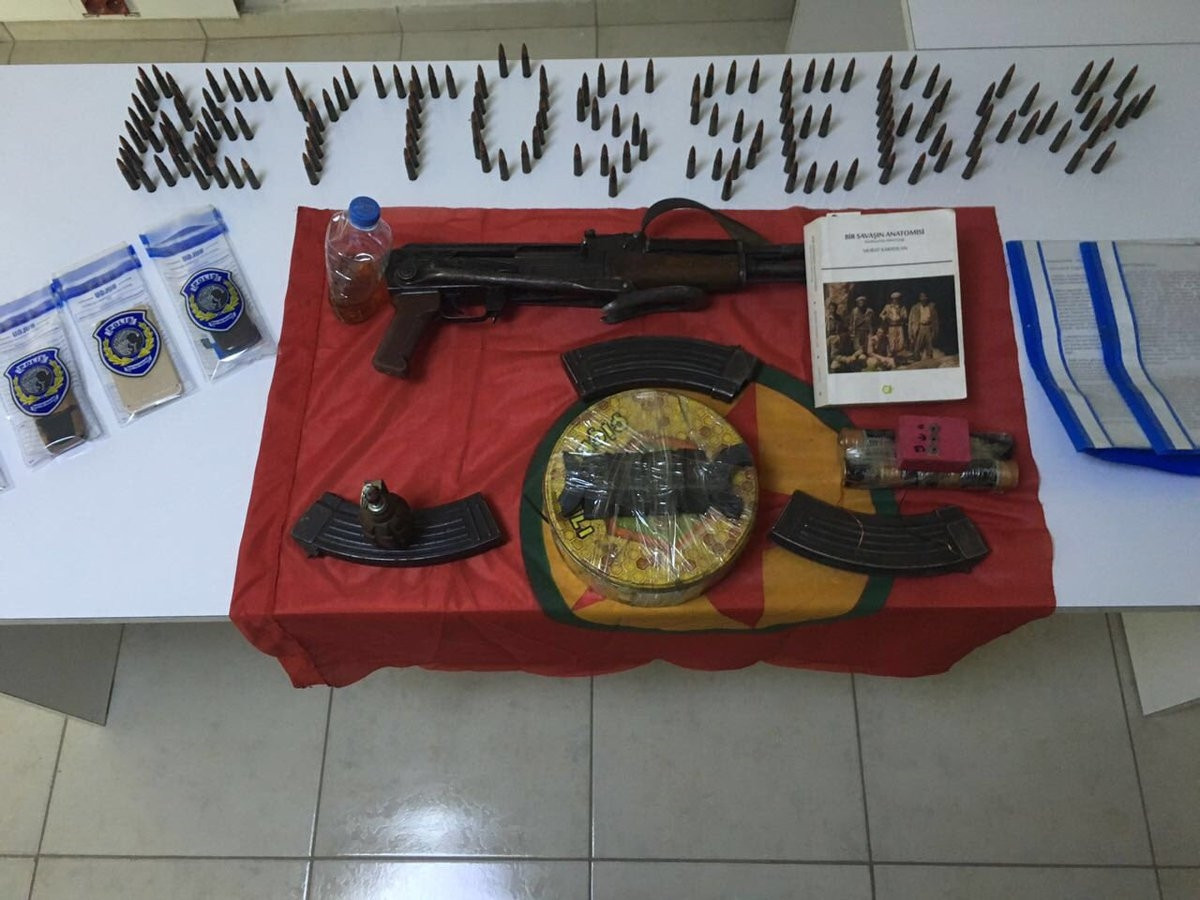 Güvenlik kaynaklarından alınan bilgiye göre, İlçe Jandarma Komutanlığı ekiplerince gerçekleştirilen operasyonda teröristlere ait, bir menfeze gizlenmiş kaleşnikof silah, 3 şarjör, 150 fişek, el bombası ve el yapımı patlayıcı ele geçirildi.