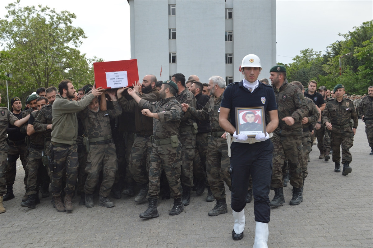 SAMSUN (AA) - Şırnak'ta terör örgütü PKK'ya yönelik operasyonda şehit olan polis memuru Ersan Gürpınar'ın (23) cenazesi memleketi Samsun'a getirildi. Şırnak'taki törenin ardından askeri kargo uçağıyla Samsun Çarşamba Havalimanı'na getirilen şehidin naaşını burada ailesi ve yakınları, Vali İbrahim Şahin, Garnizon Komutanı Tuğgeneral Mehmet Şükrü Eken, Büyükşehir Belediye Başkanı Yusuf Ziya Yılmaz, Emniyet Müdürü Vedat Yavuz ve diğer ilgililer karşıladı. Şehidin cenazesinin ambulansa taşınması sırasında güçlükle ayakta duran anne Fadime ve baba Yılmaz Gürpınar'ı Vali Şahin teselli etti. Anne Gürpınar oğlunun tabutuna sarılarak 'kahrolsun PKK lanet olsun' diyerek gözyaşı döktü. Şehidin iki ay önce nişanlandığı Pınar Arslan'ın ise özel harekat polislerinin desteği ile ayakta durabildiği gözlendi. Ambulansla Kışla Mahallesi'ndeki baba ocağına götürülen şehidin cenazesi, burada bir süre bekletildikten sonra yarın toprağa verileceği Kavak ilçesine gönderildi. Gaziantep'ten 15 gün önce geçici görevle Şırnak'a giden şehidin iki ay önce nişanlandığı ve düğün hazırlığı yaptığı öğrenildi.
