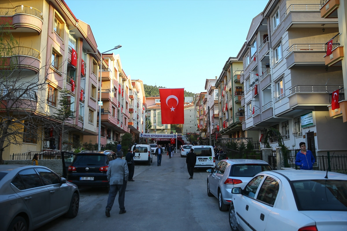 Şehidin babaevi ile çevredeki binalara komşular tarafından Türk bayrakları asıldı. Ankara Büyükşehir ve Mamak belediyeleri ekiplerince evin önüne taziye çadırı kuruldu.