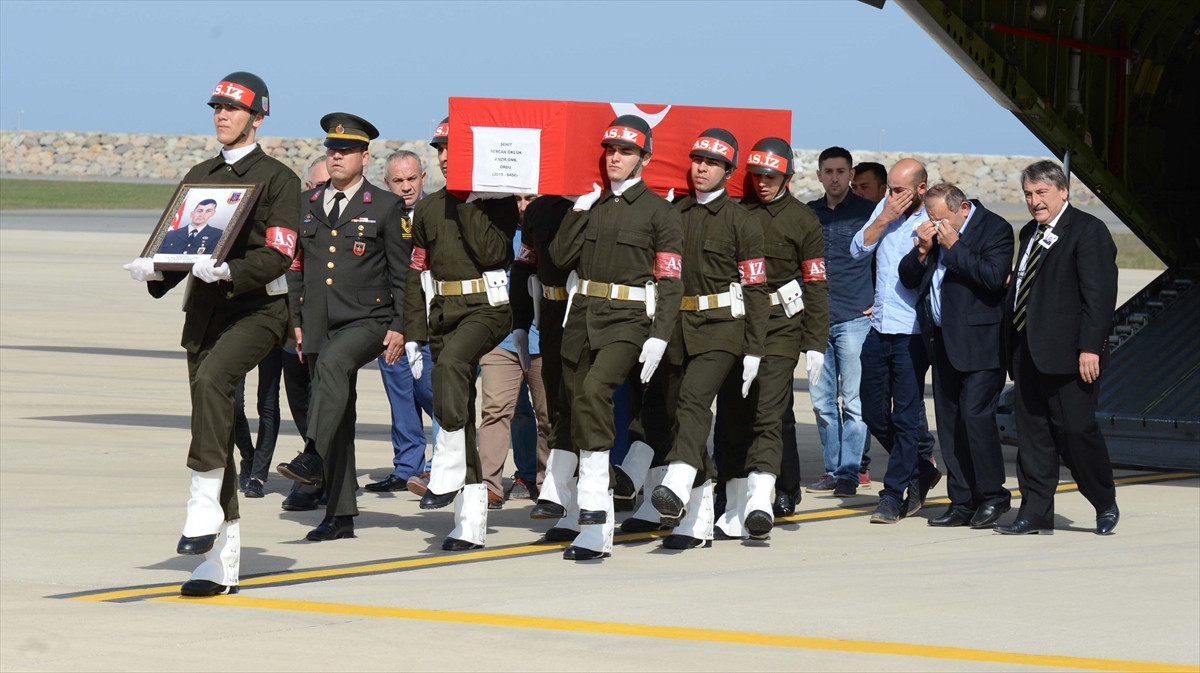 Şehit Öklük (25) için askeri uçakla getirildiği Ordu-Giresun Havalimanında tören düzenlendi.