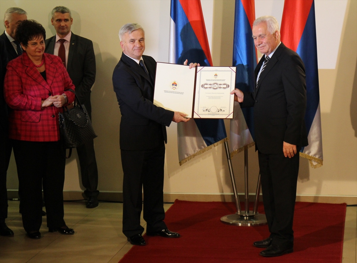 Lahey'deki cezaevinde bulunan Karadzic'in teşekkür belgesini, RS Halk Meclisi'nde başkan yardımcısı olarak görev yapan kızı Sonja Karadzic Jovicevic aldı.
