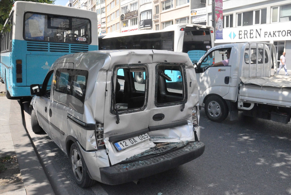 Kazada kimse yaralanmazken, otobüste ve araçlarda hasar oluştu.