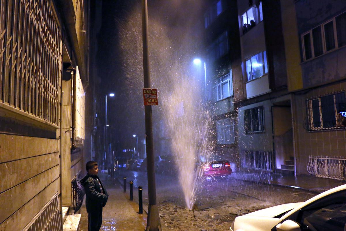 Alınan bilgiye göre, Kurtuluş Dereciler Sokak'ta şehir şebeke suyunun aktığı boru, henüz belirlenemeyen bir nedenle patladı. Buradan çıkan tazyikli su sokağa döküldü. Fışkıran suyun boyunun zaman zaman 7 katlı apartman boyuna ulaştığı görüldü.
