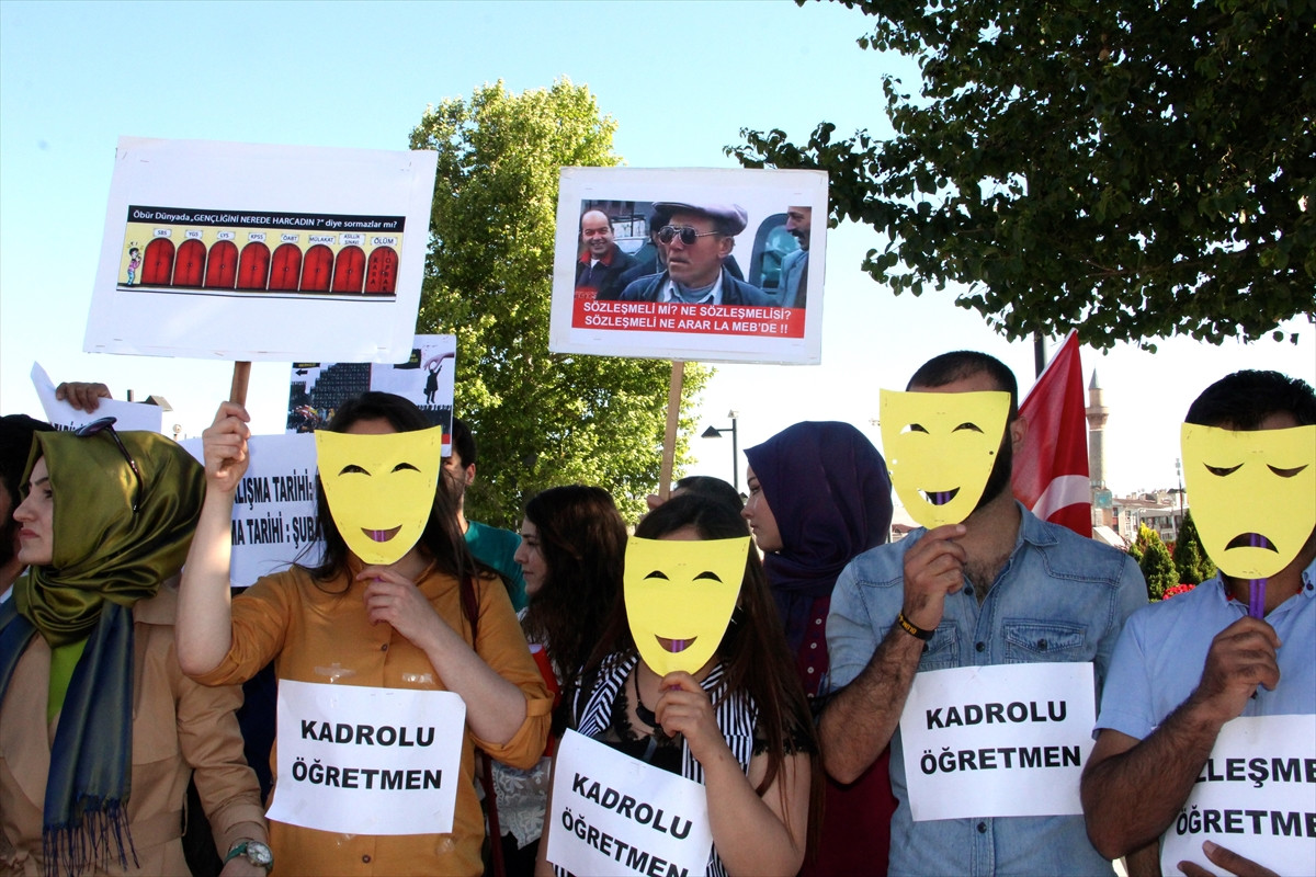 SİVAS (AA) - Sivas'ta bir grup atanamayan öğretmen, ağustos ayında öğretmen ataması yapılmaması kararını protesto etti.