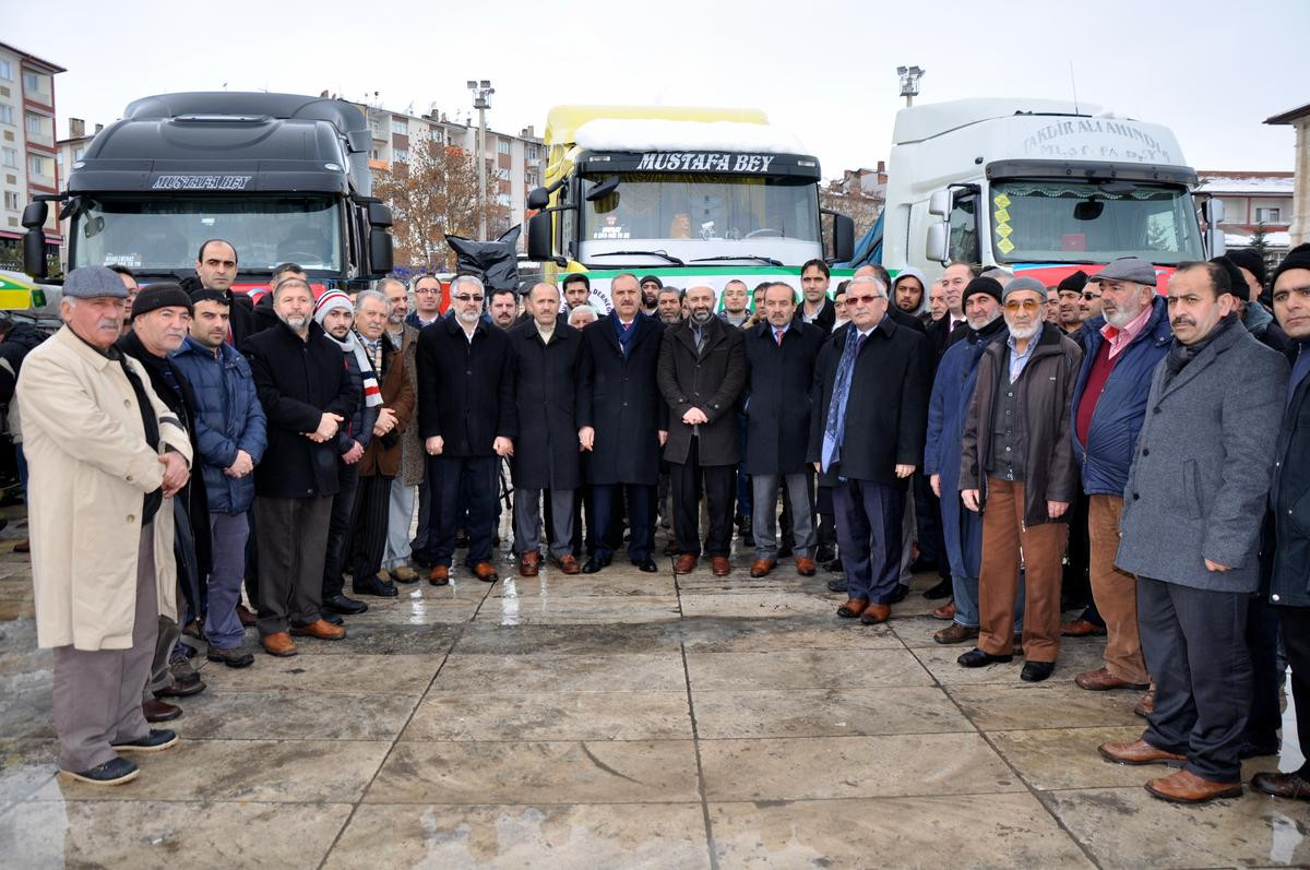 Konuşmaların ardından dua edilerek 5 yardım tırı Suriye'ye uğurlandı.