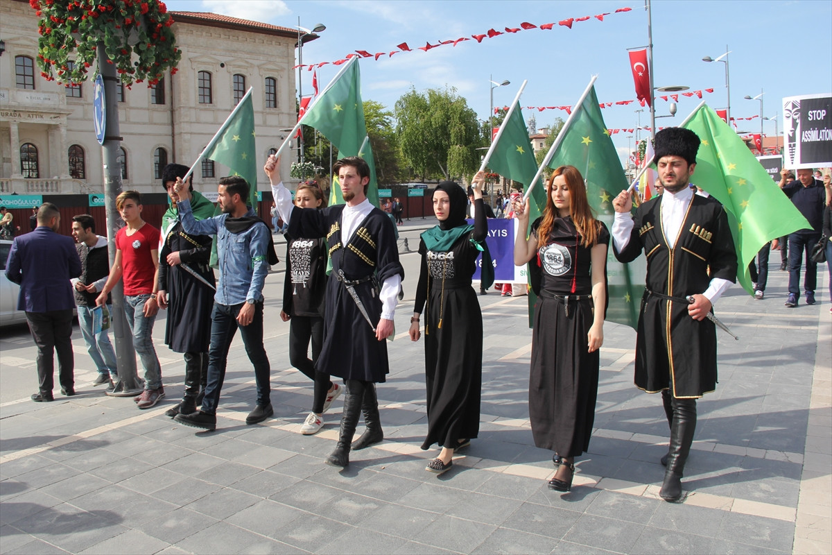 Çerkes sürgününün 152. yılı dolayısıyla Sivas Cumhuriyet Meydanına toplanan grup üyeleri, "21 Mayıs 1864 Çerkes Soykırımını ve Sürgününü unutmadık, unutmayacağız", "Kafkasya'da barış, Anadolu'da birlik", "Biz bu topraklar için savaşırken Türkçe bilmiyorduk, bugün anadilimizi bilmiyoruz" yazılı pankartlarla yürüyüşe başladı. İstasyon Caddesi üzerinde devam eden yürüyüş, 50. Yıl Kavşağı'nda son buldu. Buradan geri dönen grup üyeleri yürüyüşü Cumhuriyet Meydanı'nda tamamladı. Sivas Kuzey Kafkas Kültür Derneği Başkanı İbrahim Şahin, grup adına yaptığı açıklamada, Çerkes sürgününün 152. yıl dönümü olduğunu hatırlatarak, "Sürgünün 152. yılında bu yaşananları gündeme getirmekle intikam duygusu taşımıyor, adalet istiyoruz" dedi. Şahin, Rusların, Kafkasya'nın işgalini tamamlamak için her türlü zorbalığı kullandığını belirterek, "Ruslar, dünyada ne kadar vahşet ve mezalim mevcut ise hepsini insanlığın ve tarihin gözü önünde yapmaktan ne çekindiler ne de utandılar. Katliamlar ve sürgünlerle dolu olan bu süreci Çerkesler olarak unutmadık, unutturmayacağız. Konunun muhatabı Rusya Federasyonu'na asla unutturmayacağız." ifadesini kullandı. Kafkas-Rus savaşlarına katılan Rus komutan ve askerlerin bizzat sürgün ve soykırımı açıkça itiraf ettiklerini vurgulayan Şahin, "Çarlık Rusyası'nın uyguladığı katliamlar ve sürgün sonrası hayatta kalan Çerkeslerin torunları 40'ı aşkın ülkede anadilini, kimliklerini ve kültürlerini yaşatmak için var olma mücadelesi vermektedir." diye konuştu. Şahin, Çerkes soykırımının tanınması isteyerek şunları kaydetti: "Çerkes soykırımı ve sürgünün Türkiye başta olmak üzere tüm dünya ülkeleri tarafından tanınmasını Çerkeslerin acılarının biraz olsun hafiflemesi adına talep ediyoruz. Çarlık Rusyası'nın uyguladığı Çerkes soykırımı mirasını günümüz Rusya Federasyonu kabul ve telafi etmeli, kendi kara tarihiyle yüzleşmeli, Çerkesler için adaleti sağlayacak her türlü somut adımı atmalıdır." 21 Mayıs'ın insanlığın utanç günü olduğunu ifade eden Şahin, sürgünde hayatını kaybedenleri rahmetle andıklarını dile getirdi.