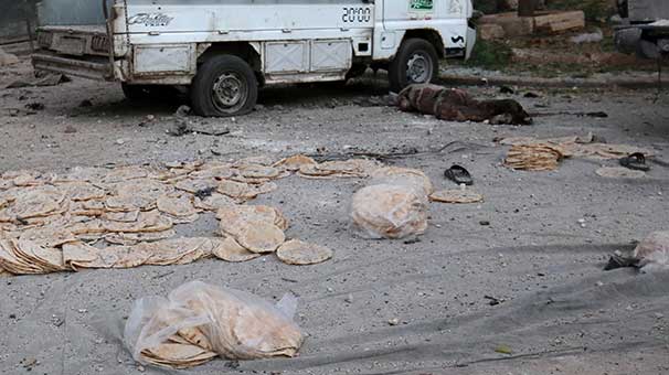 Fırındaki sivillerin ekmek almaya çalıştığı sırada Esad rejimi tarafından düzenlenen hava harekatı sonucunda Suriye'de 5 kişi hayatını kaybederken 6 kişi yaralandı.