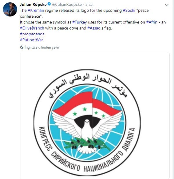 Türkiye, Rusya ve İran önderliğinde yapılacak Soçi Zirvesi'nin hazırlanan logosunda zeytin dalı yer aldı.