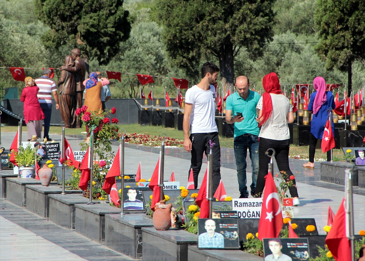 MANİSA (AA) - Manisa'nın Soma ilçesinde, şehit madencilerin aileleri, Ramazan Bayramı'nın ilk gününde Madenci Şehitliği'ni ziyaret etti.