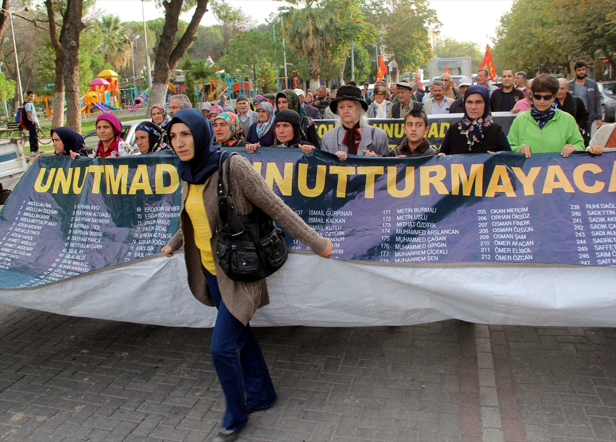 Duruşma öncesi, İstasyon mevkisinde toplanan madencilerin yakınları ve çeşitli sivil toplum kuruluşlarının temsilcileri, pankart ve dövizlerle slogan atarak duruşmanın yapılacağı Akhisar Ağır Ceza Mahkemesine yürüdü. Grup, üst aramasından geçirildikten sonra duruşma salonuna alındı.