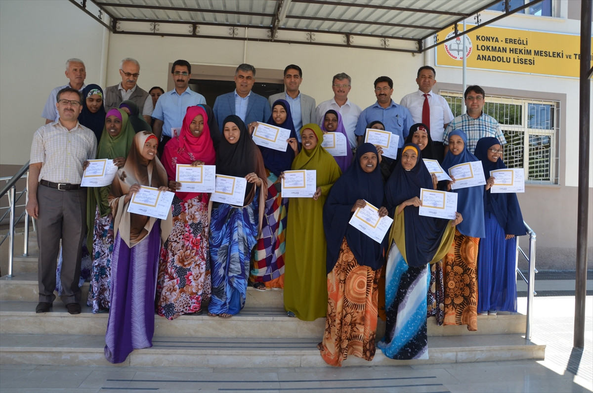 Somalili 16 kız öğrenci, Ereğli Lokman Hekim Teknik ve Mesleki Anadolu Lisesi'nden karnelerini alarak mezun oldu. Öğrencilere, başarıları dolayısıyla takdir ve onur belgesi de verildi.