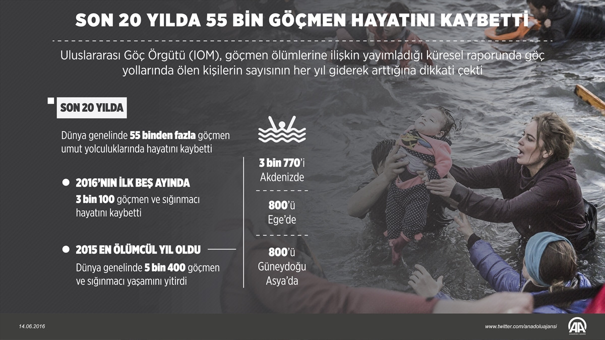 Geçen yıl, göç yollarında rekor sayıda kişi hayatını kaybetti ve 2015 göçmen ve sığınmacılar için "en ölümcül yıl" oldu. Dünya genelinde 5 bin 400 göçmen ve sığınmacı yaşamını yitirdi. Akdeniz'de ise en az 3 bin 770 kişi hayatını kaybetti.