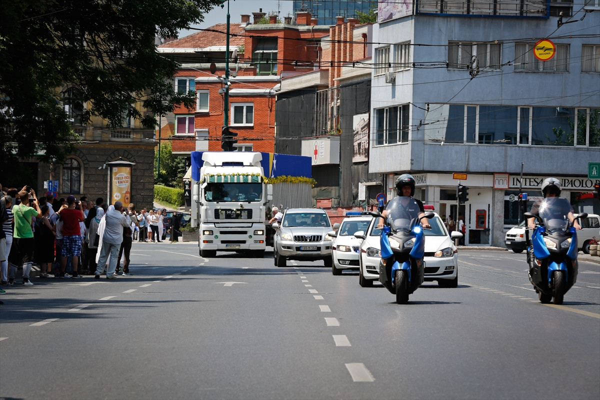 Cenazeleri taşıyan konvoy daha sonra Saraybosna'da Öldürülen Çocuklar Anıtı ve iki büyük katliam yaşanan Markale pazar yerinden geçerek, dualar, gözyaşları ve çiçeklerle Potoçari'ye uğurlandı.