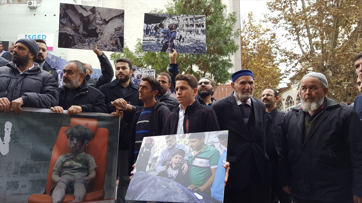 İSTANBUL (AA) - İstanbul'da bazı sivil toplum kuruşlarının temsilcileri, Halep'te yaşananları protesto etti.