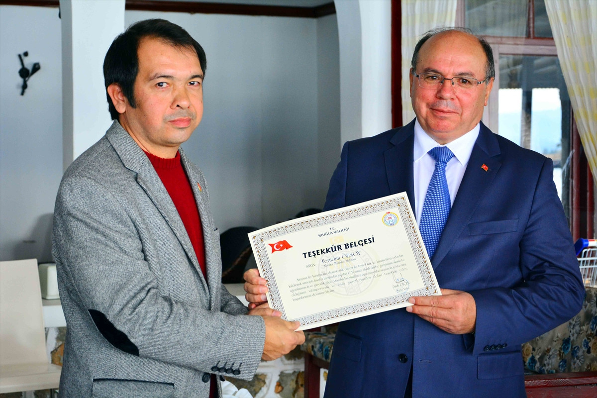 MUĞLA (AA) - Muğla Valisi Çiçek, 15 Temmuz darbe girişimi gecesi Cumhurbaşkanı Recep Tayyip Erdoğan'a suikast düzenlemek amacıyla Marmaris ilçesinde konakladığı otele saldıran ve daha sonra ormanlık alana kaçan askerlerden 36'sının yakalanması için katkıda bulunan vali yardımcısı, kaymakam ve emniyet müdürü ile muhtarlar ve avcılara teşekkür belgesi verdi.