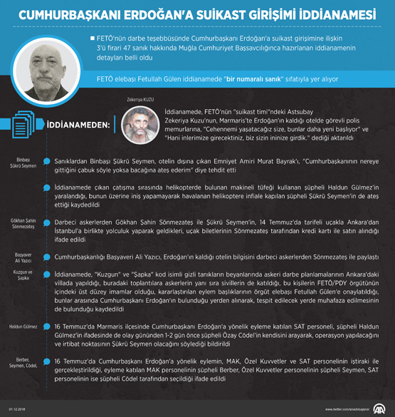 Fetullahçı Terör Örgütü'nün (FETÖ) darbe teşebbüsü sırasında Cumhurbaşkanı Recep Tayyip Erdoğan'a yönelik suikast girişimi ve iki polisin şehit edildiği saldırıya ilişkin tutuklu 44 sanığının yargılandığı davanın ilk duruşması başladı.