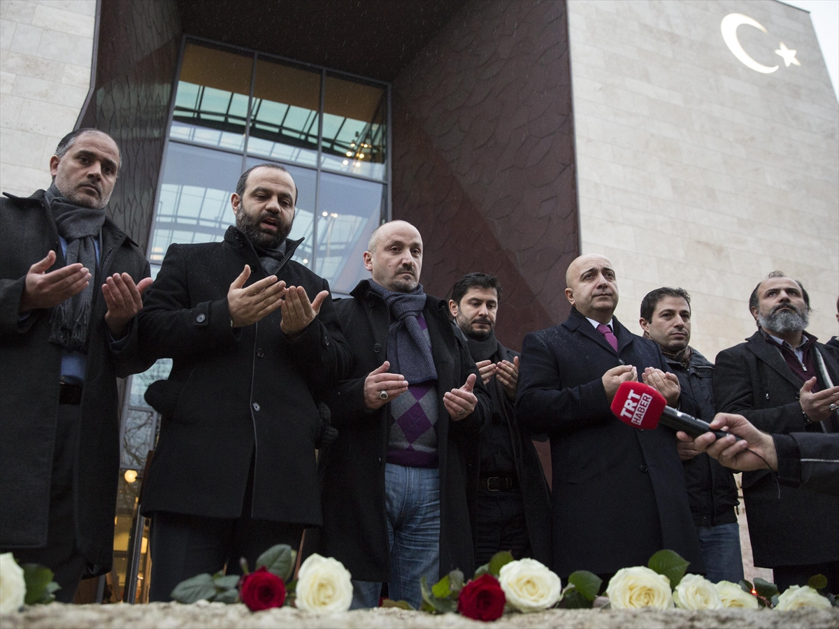 Türk sivil toplum kuruluşlarının temsilcileri daha sonra Türkiye’nin Berlin Büyükelçilik önüne gül bıraktı ve dua okudu.