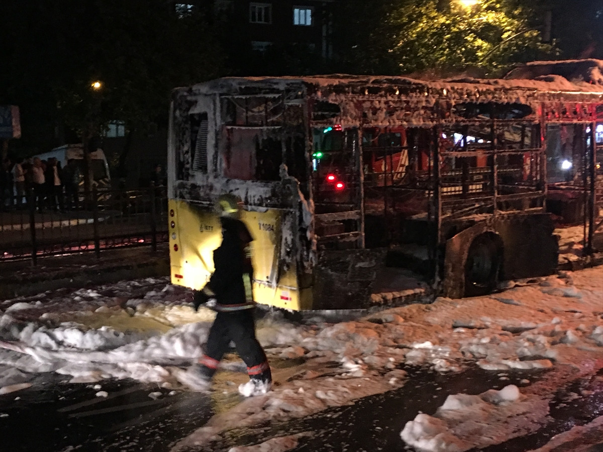 Göstericiler yoldan geçen İETT otobüsünü durdurarak, şoför ve yolcuları indirdi. Şüphelilerin molotofkokteyli attığı otobüste yangın çıktı.
