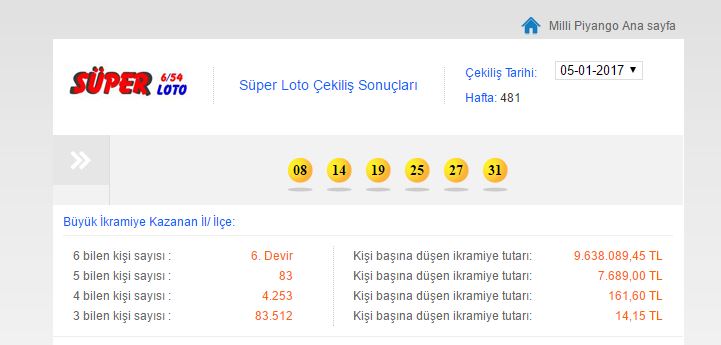 Milli Piyango İdaresi Genel Müdürlüğünce düzenlenen Süper Loto oyununun 481. hafta çekilişi yapıldı. Çekiliş sonucu haftanın kazandıran numaraları 8, 14, 19, 25, 27 ve 31 olarak belirlendi. Çekiliş sonuçları itibarıyla 9 milyon 638 bin 89 lira 45 kuruş haftaya devretti. İşte Süper Loto çekiliş sonuçları hakkında tüm detaylar!